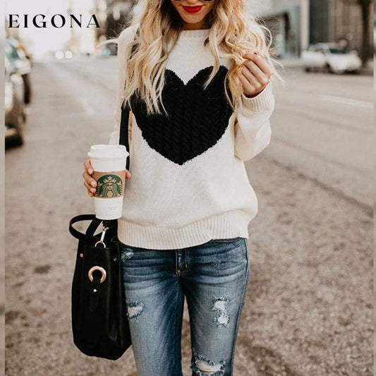Suéteres de punto de corazón lindo de manga larga con cuello redondo para mujer