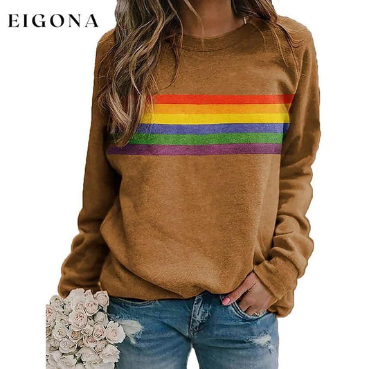 Camiseta de mujer con estampado de arcoíris y manga larga con cuello redondo