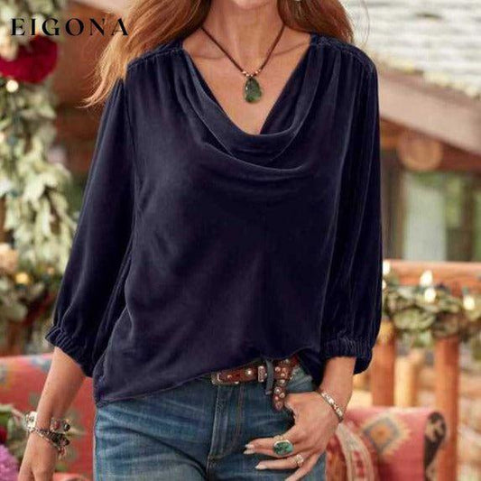 Top elegante con cuello pronunciado y manga tres cuartos de terciopelo dorado para mujer, Camisas para mujer