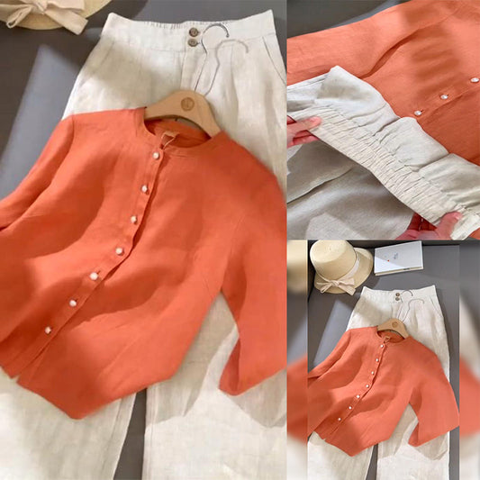 Lässiger, einfarbiger Hosenanzug mit langen Ärmeln
