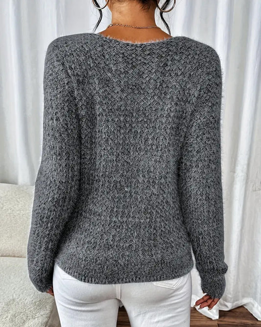 Plüschpullover mit V-Ausschnitt und langen Ärmeln
