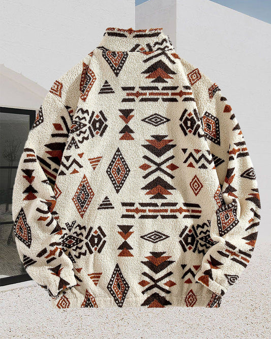 Sweatshirt für Herren mit Vintage-Print, Stehkragen, Reißverschlusstasche