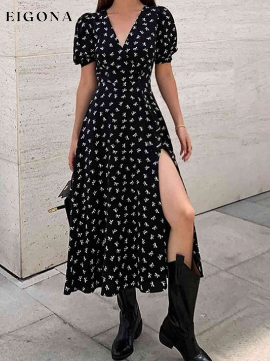 Vestido con abertura y cuello sobrepelliz de manga abullonada