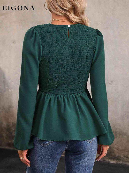 Top fruncido con cuello redondo y manga globo