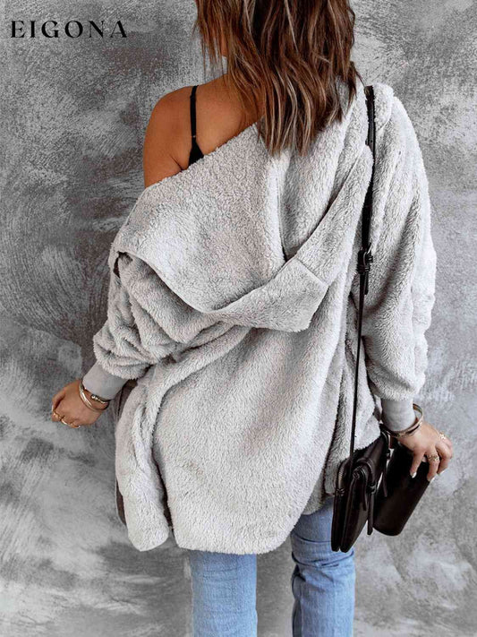 Outwear de piel sintética con capucha y frente abierto con bolsillos