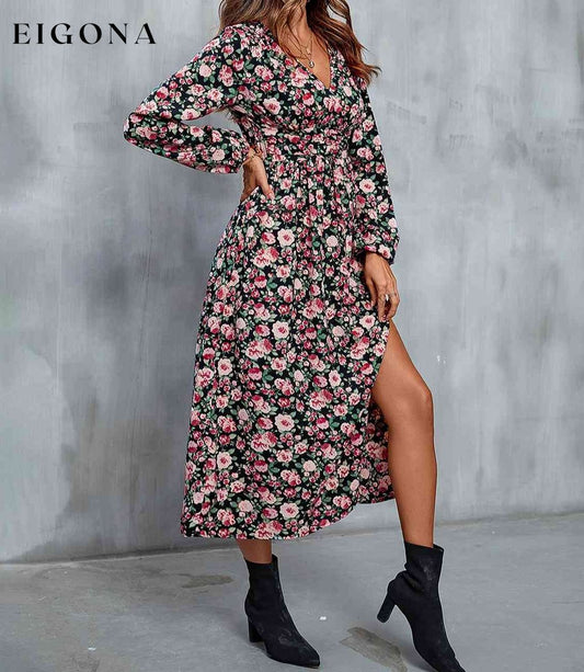 Vestido midi con abertura y cuello en V floral