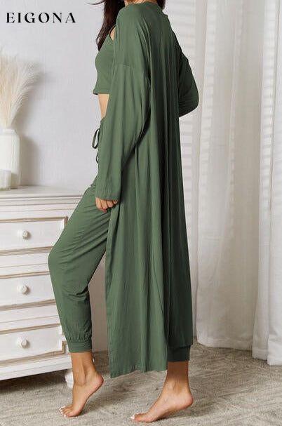 Conjunto de camiseta sin mangas, pantalones y cárdigan con bolsillos