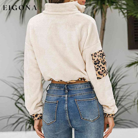Sudadera corta con cordón y media cremallera de leopardo