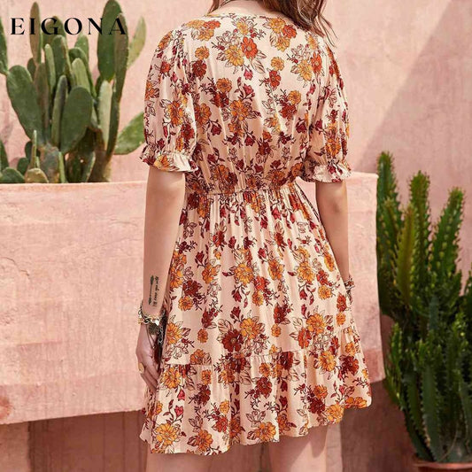 Vestido floral con cuello en V y mangas con volantes