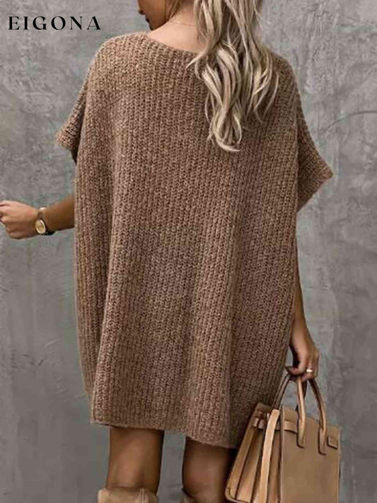 Vestido suéter de manga corta con bolsillos