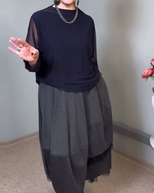 Lässiger, lockerer Pullover mit langen Ärmeln und offenem Schulterbereich