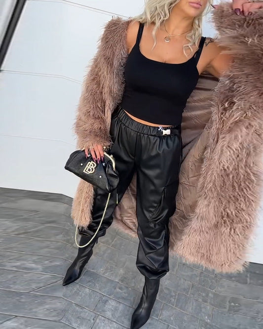 Skinny-Hose aus Kunstleder mit hoher Taille für Damen