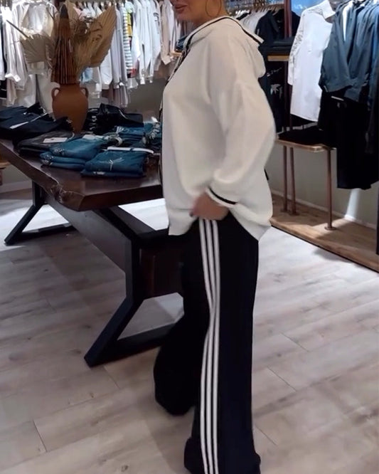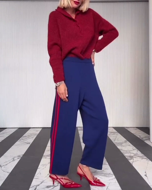 Lässige, gestreifte Hose mit geradem, weitem Bein