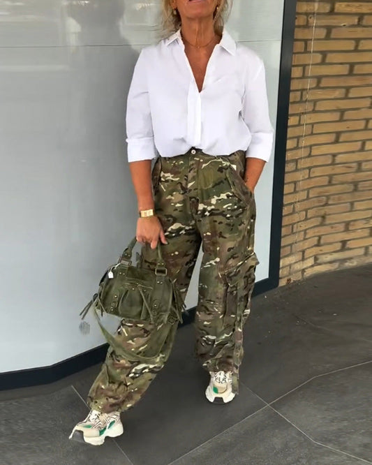 Modische Patchwork-Hose in Volltonfarbe mit Taschen