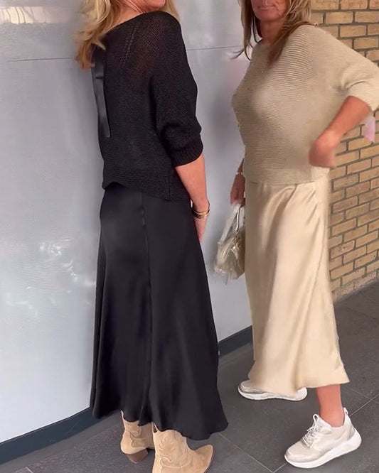 Falda casual sedosa de color liso.
