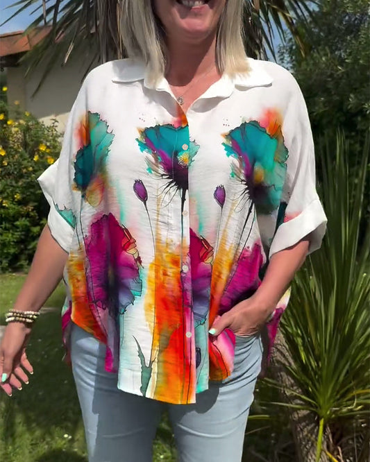 Camisa con botones y solapa con estampado floral difuminado