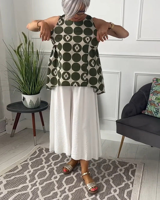 Blusa plisada con estampado de lunares sin mangas de moda