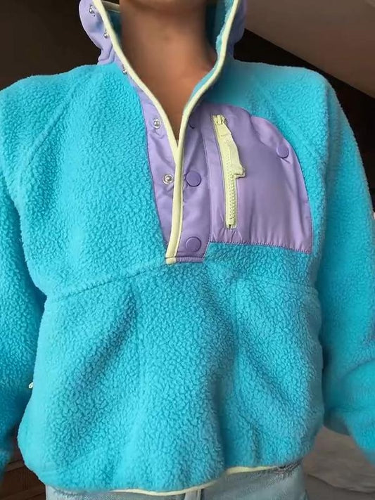 Lässiges Patchwork-Kapuzensweatshirt für Damen