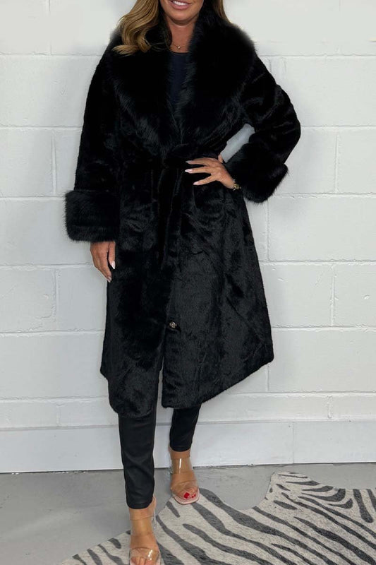 Pelzmantel mit langen Ärmeln und Revers für Damen