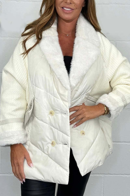 Gesteppte/gestrickte Jacke mit Kunstpelzkragen und Reißverschlusstasche für Damen