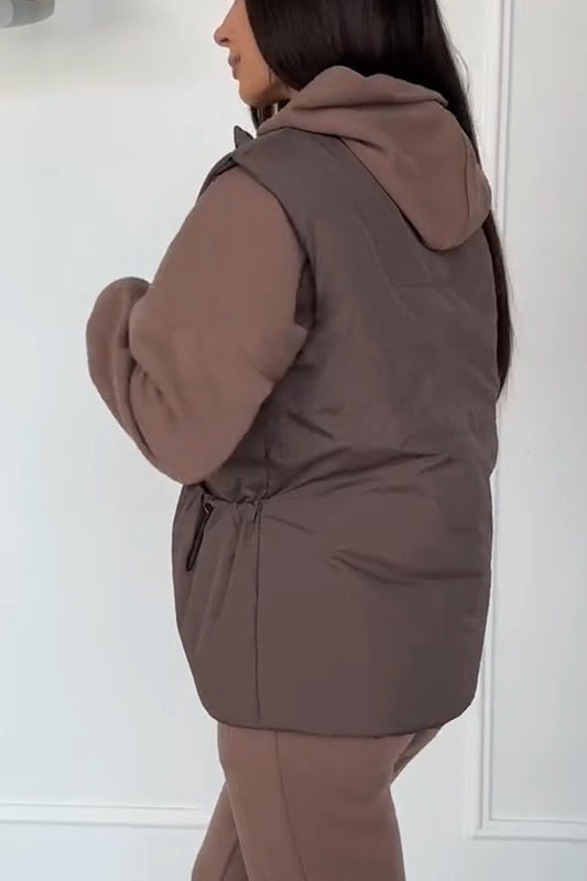 Mehrfarbiger Thermo-Westenmantel mit Reißverschluss und Kapuze für den Winter für Damen