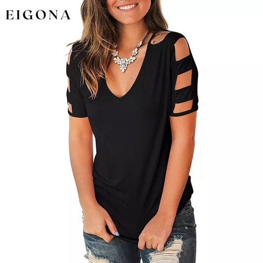 Camisetas de manga corta con hombros descubiertos y cuello en V profundo para mujer
