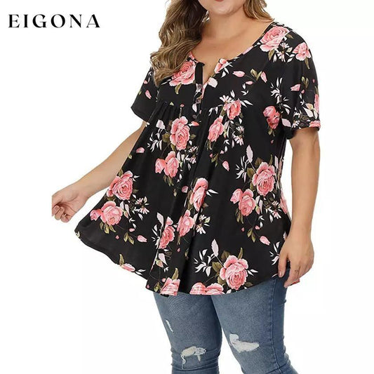 Camisas Henley para mujer Blusas de manga corta con estampado floral