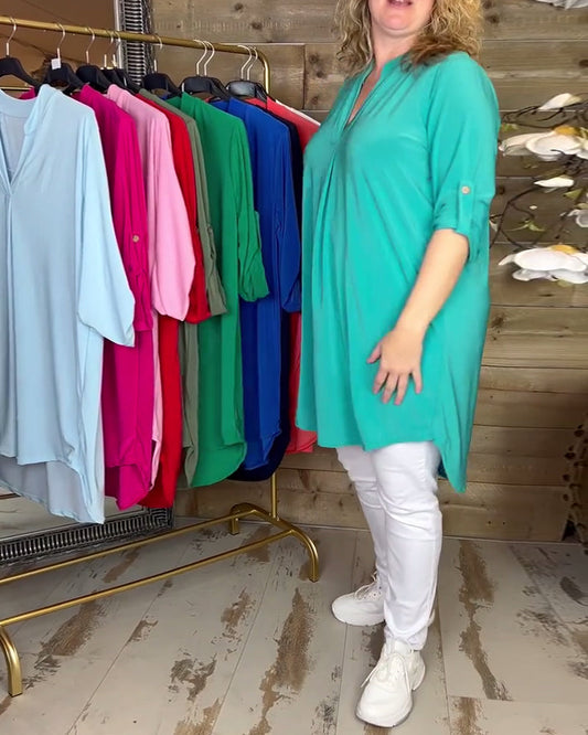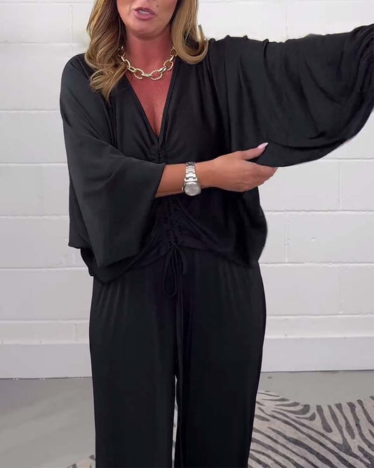 Elegantes Oberteil mit V-Ausschnitt, einfarbig und weiten Ärmeln