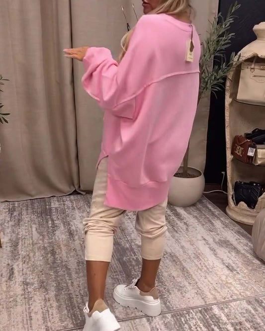 Einfarbiges, unregelmäßiges Pullover-Sweatshirt mit V-Ausschnitt