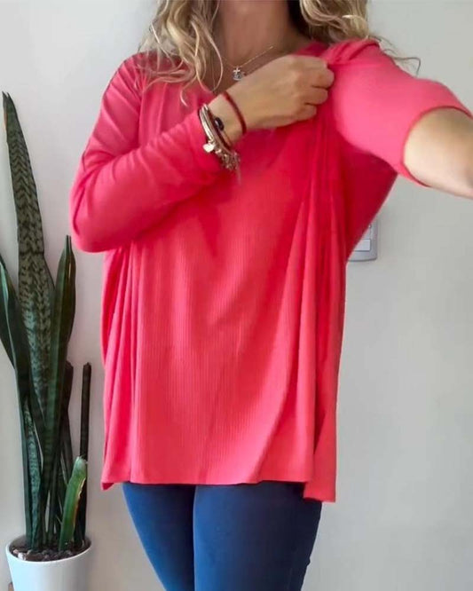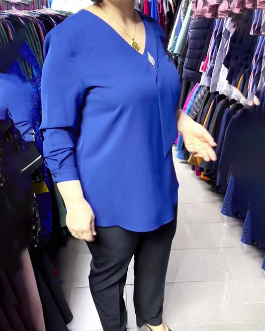 Einfarbige Langarmbluse mit V-Ausschnitt