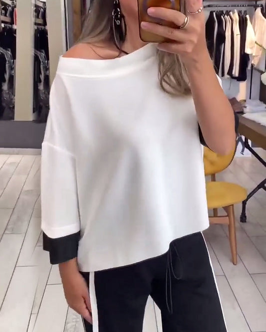 Ensemble pantalon droit asymétrique imprimé à rayures décontracté