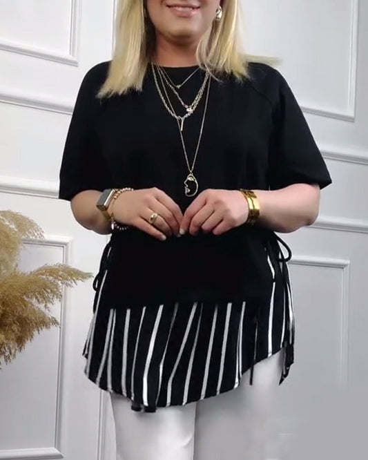 Haut décontracté à manches courtes en patchwork imprimé à rayures