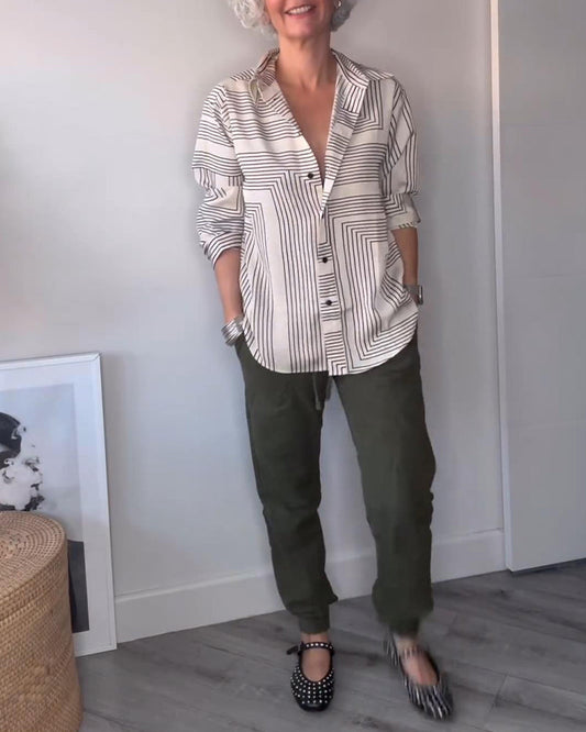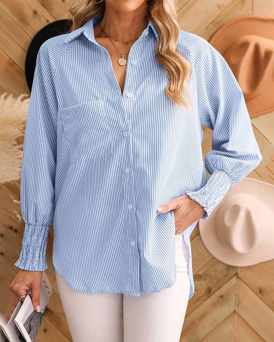 Blouse décontractée à manches longues et boutons imprimés à rayures