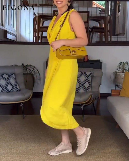 Robes décontractées trapèze plissées sans manches à col en V d'été