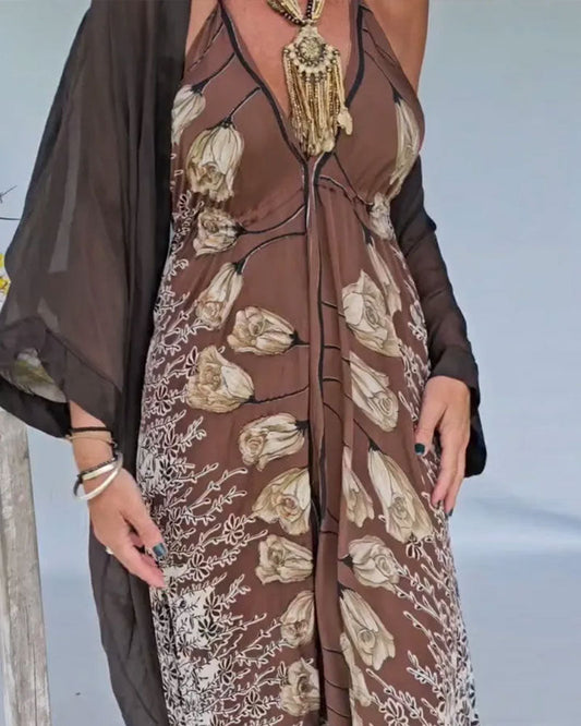 Spaghettiträgerkleid mit Vintage-Print für den Urlaub