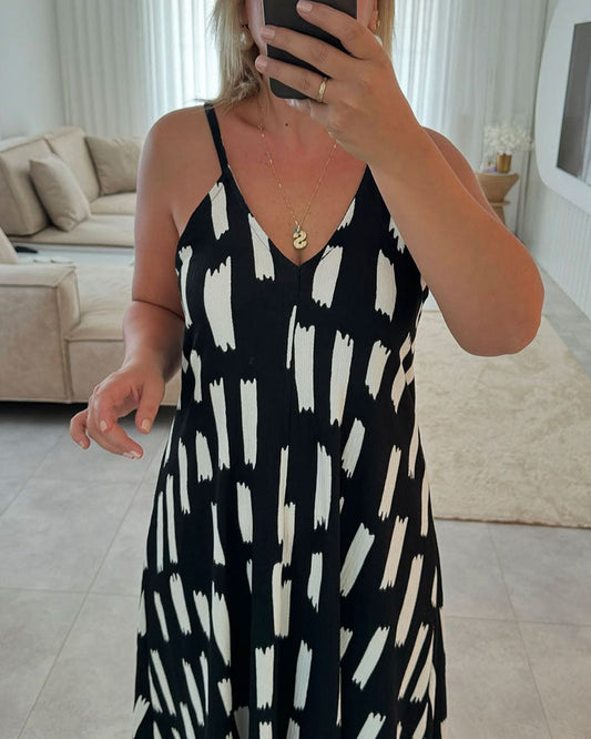 Kleid mit Spaghettiträgern und geometrischem Muster