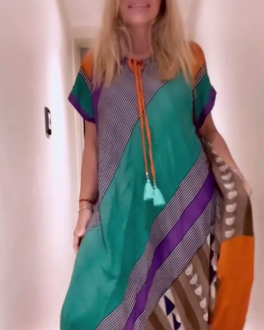 Lockeres, langes Freizeitkleid im Retro-Stil mit Schnürung