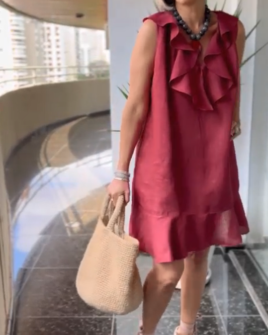Ärmelloses, einfarbiges Kleid mit Rüschen