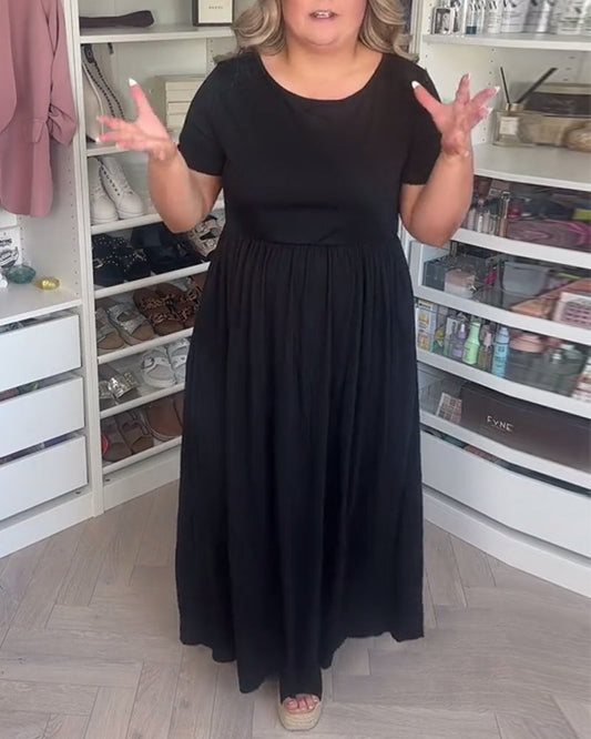 Lässiges A-Linien-Kleid mit Plissee und Rundhalsausschnitt