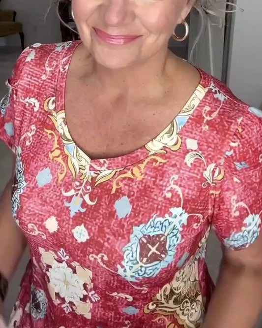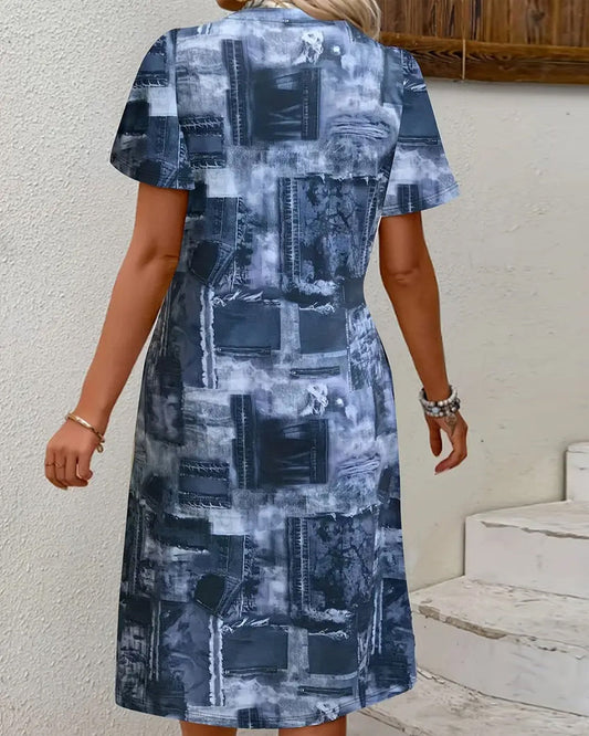 Lässiges, kurzärmliges Kleid mit Rundhalsausschnitt und Print