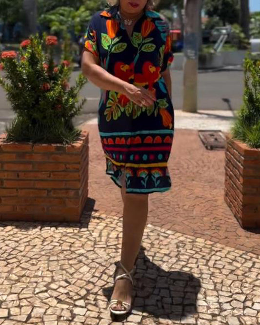 Lockeres Kleid im Ethno-Stil mit Print