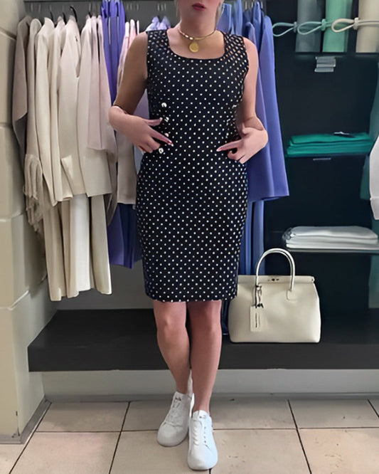 Hüftkleid mit weitem Kragen und Punkten