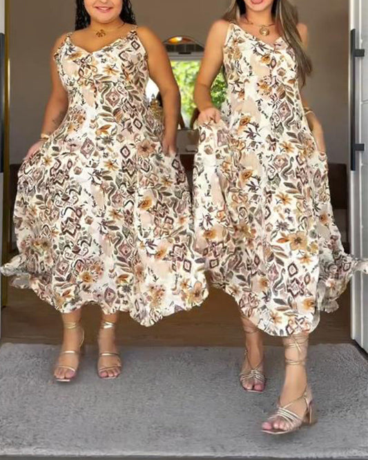 Maxikleid mit Sling-Resort-Print