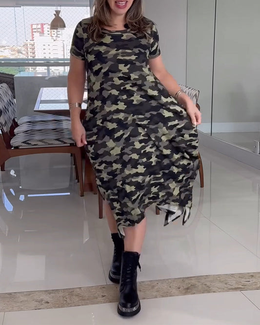 Kleid mit Schlitz im Camouflage-Print