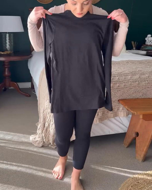 Ensemble deux pièces de sous-vêtements thermiques de couleur unie