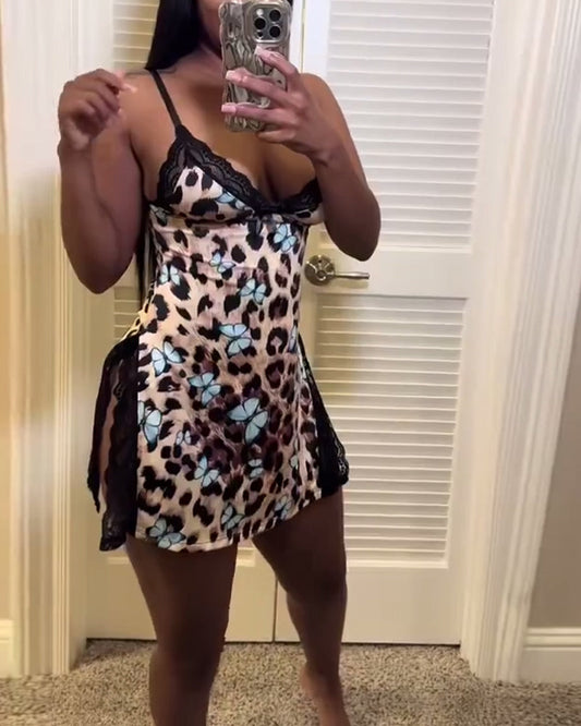 Sexy Kleid mit Leoparden-Schmetterlings-Print