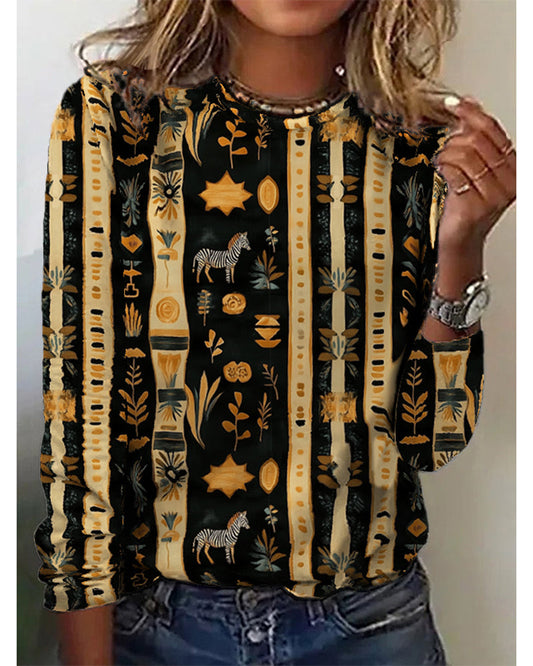 Langärmliges Oberteil mit Rundhalsausschnitt und geometrischem Retro-Print