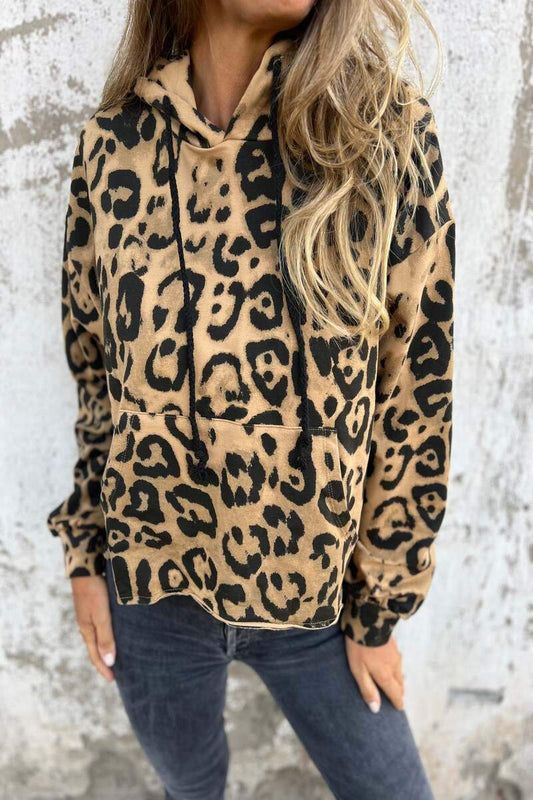 Kapuzenpullover mit Leopardenmuster und langen Ärmeln für Damen