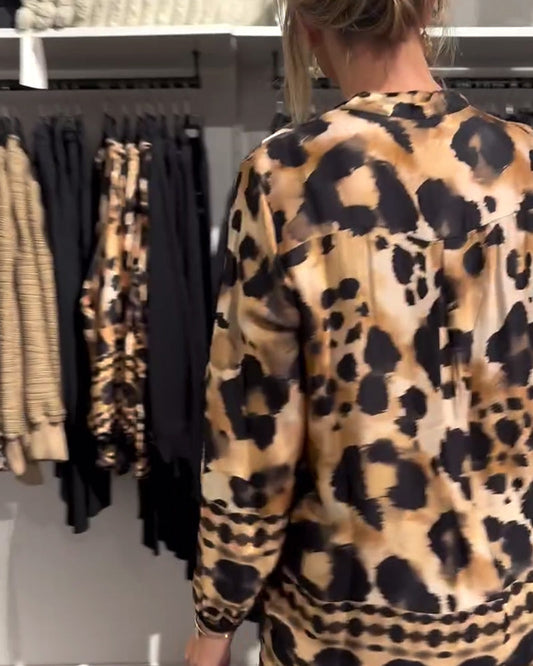 Lässige Strickjacke mit Leopardenmuster und Patchwork-Ärmeln für Damen