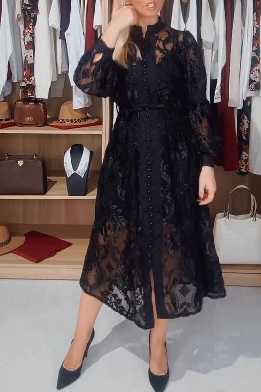 Lässiges, elegantes Spitzenkleid für Damen mit offener Knopfleiste
